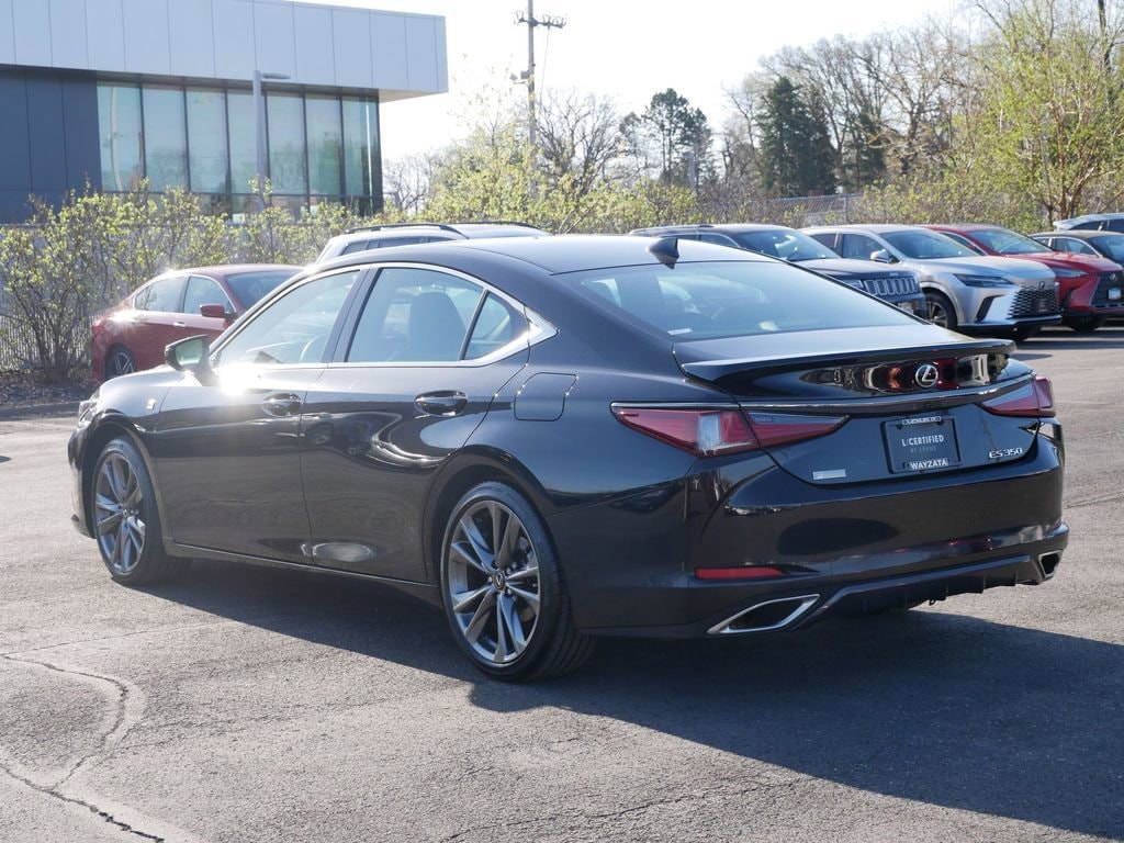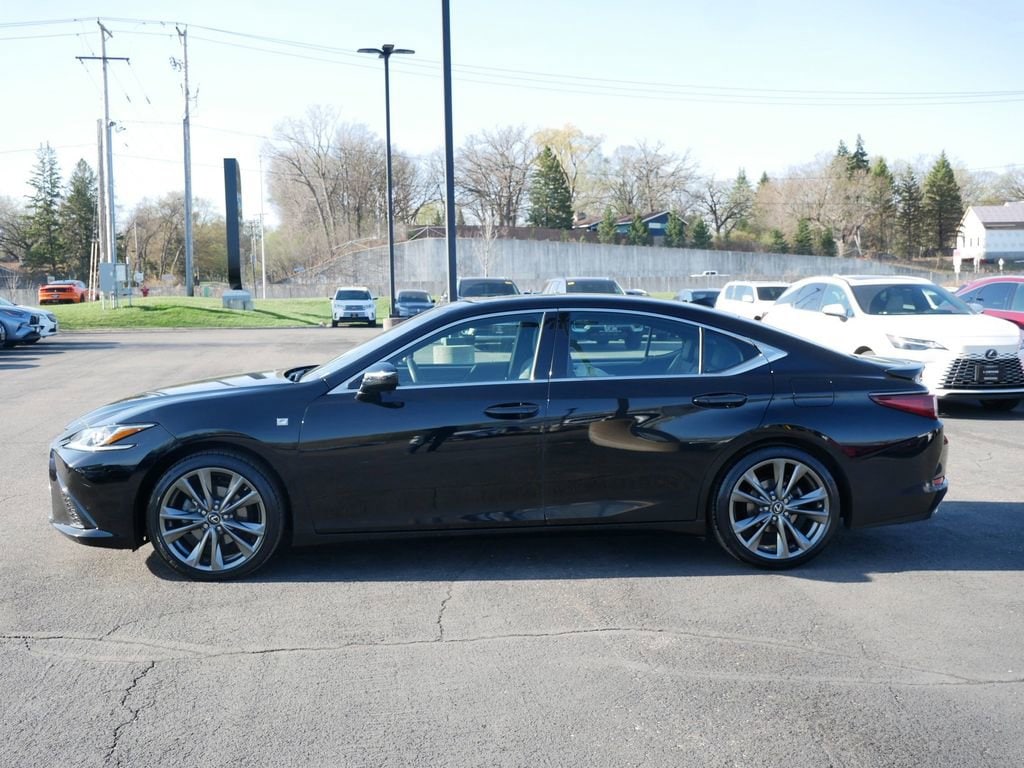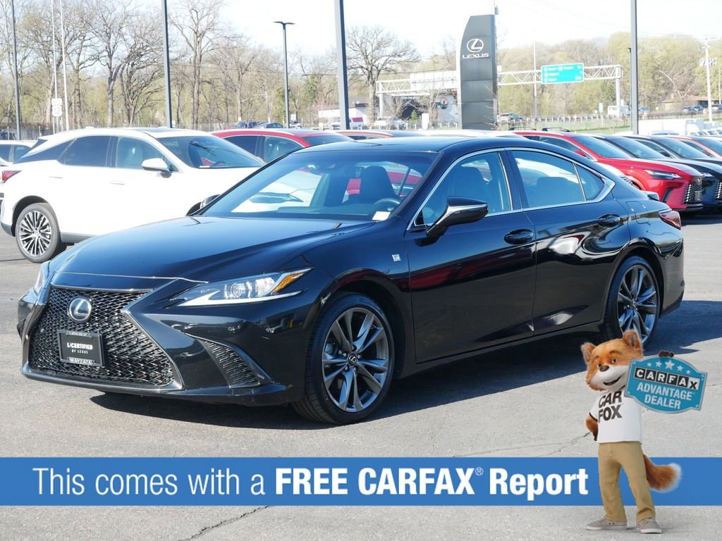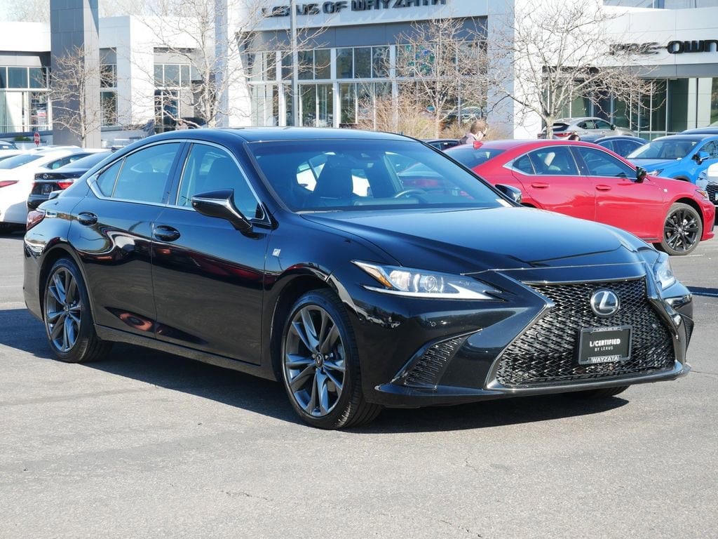 This ES is well equipped with L/Certified Certified, Black w/Hadori Aluminum w/F SPORT NuLuxe Seat Trim, 10 Speakers, 10-Way Power Adjustable F SPORT Front Seats, 4-Wheel Disc Brakes, ABS brakes, Air Conditioning, Alloy wheels, AM/FM radio: SiriusXM, Auto High-beam Headlights, Auto tilt-away steering wheel, Auto-dimming door mirrors, Auto-dimming Rear-View mirror, Automatic temperature control, Brake assist, Bumpers: body-color, CD player, Compass, Delay-off headlights, Driver door bin, Driver Seat Memory, Driver vanity mirror, Dual front impact airbags, Dual front side impact airbags, Electronic Stability Control, Emergency communication system: Lexus Enform Safety Connect, Exterior Parking Camera Rear, F SPORT NuLuxe Seat Trim, Four wheel independent suspension, Front anti-roll bar, Front Bucket Seats, Front Center Armrest, Front dual zone A/C, Front reading lights, Fully automatic headlights, Garage door transmitter: HomeLink, Heated & Ventilated Seats, Heated door mirrors, Heated front seats, Illuminated entry, Knee airbag, Leather Shift Knob, Leather steering wheel, Low tire pressure warning, Memory seat, Occupant sensing airbag, Outside temperature display, Overhead airbag, Overhead console, Panic alarm, Passenger door bin, Passenger vanity mirror, Power door mirrors, Power driver seat, Power moonroof, Power passenger seat, Power steering, Power Tilt/Telescoping Steering Wheel w/Memory, Power windows, Radio data system, Radio: Lexus Premium Sound System w/10 Speakers, Rain Sensing Wipers, Rain sensing wipers, Rear anti-roll bar, Rear reading lights, Rear seat center armrest, Rear side impact airbag, Rear window defroster, Remote keyless entry, Security system, Speed control, Speed-sensing steering, Sport steering wheel, Steering wheel memory, Steering wheel mounted audio controls, Tachometer, Telescoping steering wheel, Tilt steering wheel, Traction control, Trip computer, Turn signal indicator mirrors, Variably intermittent wipers, Ventilated front seats, and Wheels: 19 x 8J Split Spoke Aluminum Alloy.