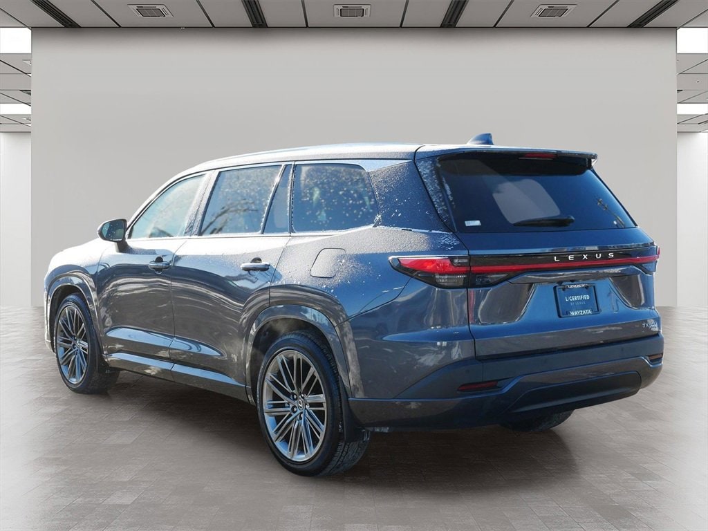 This TX is well equipped with L/Certified Certified, ABS brakes, Active Cruise Control, Alloy wheels, Electronic Stability Control, Front dual zone A/C, Heated & Ventilated Front Seats, Heated door mirrors, Heated front seats, Heated rear seats, Illuminated entry, Low tire pressure warning, Navigation System, Power Liftgate, Power moonroof, Remote keyless entry, Traction control, 12 Speakers, 3rd row seats: split-bench, 4-Wheel Disc Brakes, Air Conditioning, AM/FM radio, Auto High-beam Headlights, Auto tilt-away steering wheel, Auto-dimming door mirrors, Auto-dimming Rear-View mirror, Automatic temperature control, Brake assist, Bumpers: body-color, Delay-off headlights, Driver door bin, Driver vanity mirror, Dual front impact airbags, Dual front side impact airbags, Emergency communication system: Safety Connect (10-year trial), Exterior Parking Camera Rear, Four wheel independent suspension, Front anti-roll bar, Front Bucket Seats, Front Center Armrest, Front fog lights, Front reading lights, Fully automatic headlights, Garage door transmitter: HomeLink, Heated steering wheel, Knee airbag, Leather Shift Knob, Leather steering wheel, Memory seat, Navigation system: Drive Connect Cloud Navigation (3-year trial subscription included), Occupant sensing airbag, Outside temperature display, Overhead airbag, Panic alarm, Passenger door bin, Passenger vanity mirror, Power door mirrors, Power driver seat, Power passenger seat, Power steering, Power windows, Radio data system, Radio: Lexus Interface, Rain sensing wipers, Rear air conditioning, Rear anti-roll bar, Rear reading lights, Rear seat center armrest, Rear window defroster, Rear window wiper, Reclining 3rd row seat, Security system, Semi-Aniline Synthetic Suede Seat Trim, Speed control, Speed-sensing steering, Split folding rear seat, Spoiler, Steering wheel memory, Steering wheel mounted audio controls, Tachometer, Telescoping steering wheel, Tilt steering wheel, Trip computer, Turn signal indicator mirrors, Variably intermittent wipers, Ventilated front seats, Wheels: 20 Multi-Spoke Alloy, and Wireless Apple CarPlay/Wireless Android Auto.