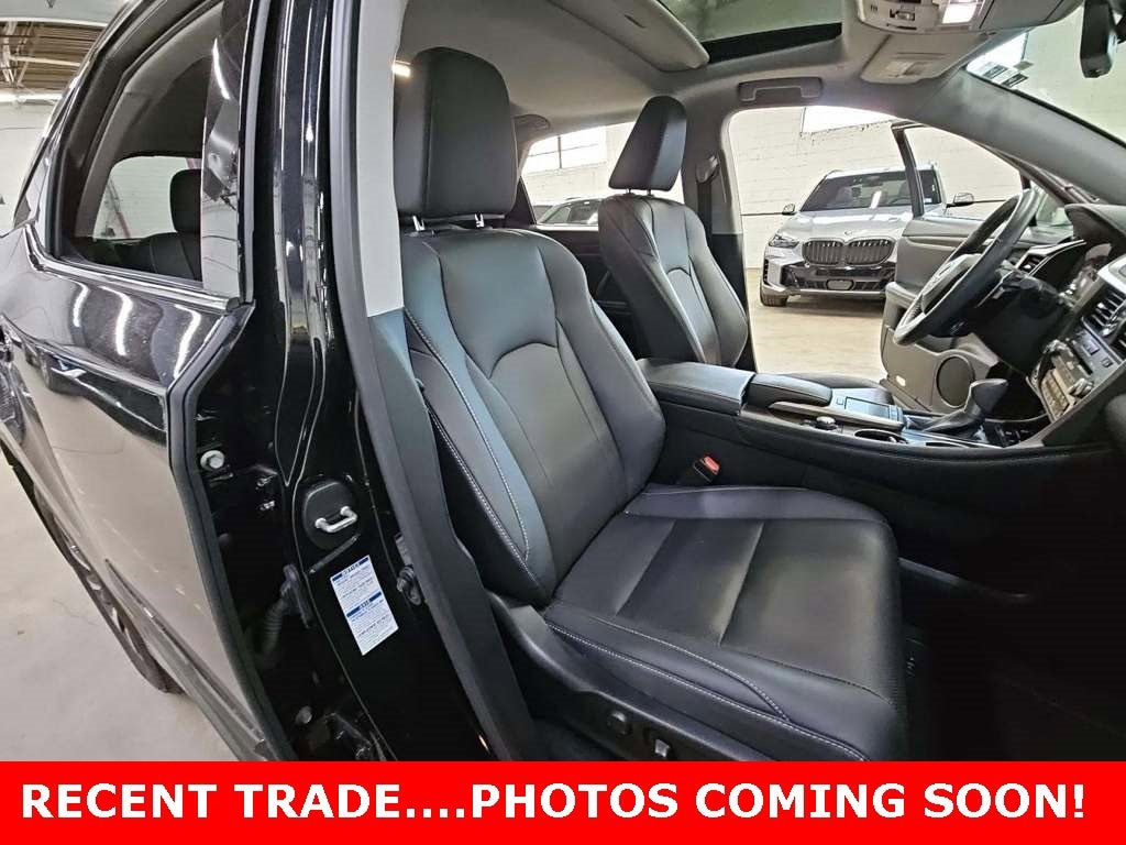 This RX is well equipped with L/Certified Certified, AWD, Black w/Semi-Aniline Seat Trim, 18 x 8 Aluminum Wheels, 3.33 Axle Ratio, 4-Wheel Disc Brakes, 9 Speakers, ABS brakes, Air Conditioning, Alloy wheels, AM/FM radio: SiriusXM, AM/FM/CD Radio, Anti-whiplash front head restraints, Apple CarPlay/Android Auto, Auto High-beam Headlights, Auto-dimming door mirrors, Auto-dimming Rear-View mirror, Automatic temperature control, Brake assist, Bumpers: body-color, CD player, Compass, Delay-off headlights, Driver door bin, Driver vanity mirror, Dual front impact airbags, Dual front side impact airbags, Electronic Stability Control, Emergency communication system, Exterior Parking Camera Rear, Four wheel independent suspension, Front anti-roll bar, Front Bucket Seats, Front Center Armrest, Front dual zone A/C, Front reading lights, Fully automatic headlights, Garage door transmitter: HomeLink, Genuine wood console insert, Genuine wood door panel insert, Heated door mirrors, Illuminated entry, Knee airbag, Leather Shift Knob, Low tire pressure warning, NuLuxe Seat Trim, Occupant sensing airbag, Outside temperature display, Overhead airbag, Overhead console, Panic alarm, Passenger door bin, Passenger vanity mirror, Power door mirrors, Power driver seat, Power Liftgate, Power passenger seat, Power steering, Power windows, Radio data system, Rain sensing wipers, Rear anti-roll bar, Rear reading lights, Rear seat center armrest, Rear side impact airbag, Rear window defroster, Rear window wiper, Remote keyless entry, Security system, Speed control, Speed-sensing steering, Split folding rear seat, Spoiler, Steering wheel mounted audio controls, Tachometer, Telescoping steering wheel, Tilt steering wheel, Traction control, Trip computer, Turn signal indicator mirrors, and Variably intermittent wipers.