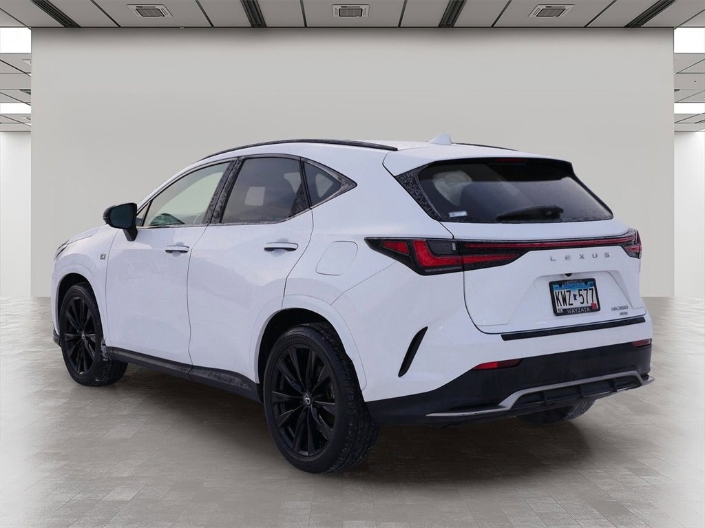 This NX is well equipped with L/Certified Certified, 10 Speakers, 20 Wheels, 4-Wheel Disc Brakes, ABS brakes, Adaptive suspension, Air Conditioning, Alloy wheels, AM/FM radio: SiriusXM, Anti-whiplash front head restraints, Auto High-beam Headlights, Auto tilt-away steering wheel, Auto-dimming door mirrors, Auto-dimming Rear-View mirror, Automatic temperature control, Brake assist, Bumpers: body-color, Delay-off headlights, Driver door bin, Driver vanity mirror, Dual front impact airbags, Dual front side impact airbags, Electronic Stability Control, Emergency communication system: Safety Connect (up to 10-year trial subscription included), Exterior Parking Camera Rear, F SPORT NuLuxe Seat Trim, Four wheel independent suspension, Front anti-roll bar, Front Bucket Seats, Front Center Armrest, Front dual zone A/C, Front fog lights, Front reading lights, Fully automatic headlights, Garage door transmitter: HomeLink, Heads-Up Display, Heated door mirrors, Heated Front Bucket Seats, Heated front seats, Illuminated entry, Knee airbag, Leather Shift Knob, Leather steering wheel, Low tire pressure warning, Navigation system: Drive Connect Cloud Navigation (subscription required), Occupant sensing airbag, Outside temperature display, Overhead airbag, Overhead console, Panic alarm, Passenger door bin, Passenger vanity mirror, Power door mirrors, Power driver seat, Power passenger seat, Power steering, Power windows, Radio data system, Rain sensing wipers, Rear anti-roll bar, Rear reading lights, Rear seat center armrest, Rear window defroster, Rear window wiper, Remote keyless entry, Security system, Speed control, Speed-sensing steering, Speed-Sensitive Wipers, Split folding rear seat, Spoiler, Sport steering wheel, Steering wheel mounted audio controls, Tachometer, Telescoping steering wheel, Tilt steering wheel, Traction control, Trip computer, Turn signal indicator mirrors, Variably intermittent wipers, and Wireless Apple CarPlay/Wireless Android Auto.