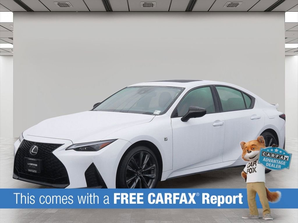 This IS is well equipped with L/Certified Certified, AWD, Circut Red LEATHER, 10 Speakers, 4-Wheel Disc Brakes, ABS brakes, Air Conditioning, Alloy wheels, AM/FM radio: SiriusXM, Apple CarPlay/Android Auto, Auto High-beam Headlights, Auto-dimming door mirrors, Auto-dimming Rear-View mirror, Automatic temperature control, Brake assist, Bumpers: body-color, CD player, Compass, Delay-off headlights, Driver door bin, Driver vanity mirror, Dual front impact airbags, Dual front side impact airbags, Electronic Stability Control, Emergency communication system: Safety Connect (3-year trial), Exterior Parking Camera Rear, Four wheel independent suspension, Front anti-roll bar, Front Bucket Seats, Front Center Armrest, Front dual zone A/C, Front fog lights, Front reading lights, Fully automatic headlights, Garage door transmitter: HomeLink, Heated and Ventilated F SPORT Bolstered Seats, Heated door mirrors, Heated front seats, Heated steering wheel, Illuminated entry, Knee airbag, Leather Shift Knob, Leather steering wheel, Low tire pressure warning, Memory seat, NuLuxe Seat Trim, Occupant sensing airbag, Outside temperature display, Overhead airbag, Overhead console, Panic alarm, Passenger door bin, Passenger vanity mirror, Power door mirrors, Power driver seat, Power passenger seat, Power steering, Power windows, Radio data system, Radio: Lexus Multimedia System with 8.0 Touchscreen Display, Rain sensing wipers, Rear anti-roll bar, Rear reading lights, Rear seat center armrest, Rear side impact airbag, Rear window defroster, Remote keyless entry, Security system, Speed control, Speed-sensing steering, Speed-Sensitive Wipers, Split folding rear seat, Spoiler, Sport steering wheel, Steering wheel memory, Steering wheel mounted audio controls, Tachometer, Telescoping steering wheel, Tilt steering wheel, Traction control, Trip computer, Turn signal indicator mirrors, Variably intermittent wipers, Ventilated front seats, and Wheels: 19 Split-5-Spoke Alloy with Dark Metallic Finish.