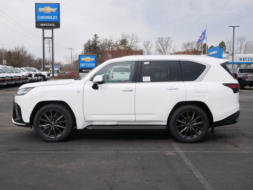 This LX is well equipped with F SPORT Package, V6, Ld31 Circuit Leather, 3rd row seats: split-bench, 4-Wheel Disc Brakes, ABS brakes, Adaptive suspension, Air Conditioning, Alloy wheels, AM/FM radio: SiriusXM, Apple CarPlay/Android Auto, Auto High-beam Headlights, Auto tilt-away steering wheel, Auto-dimming door mirrors, Auto-dimming Rear-View mirror, Auto-leveling suspension, Automatic temperature control, Black Emblem Overlays, Brake assist, Bumpers: body-color, Compass, Delay-off headlights, Driver door bin, Driver vanity mirror, Dual front impact airbags, Dual front side impact airbags, Electronic Stability Control, Emergency communication system: Safety Connect (up to 10-year trial subscription included), Exterior Parking Camera Rear, F SPORT Side Puddle Lamps, Front anti-roll bar, Front Bucket Seats, Front Center Armrest, Front dual zone A/C, Front fog lights, Front reading lights, Front wheel independent suspension, Fully automatic headlights, Garage door transmitter: HomeLink, Headlight cleaning, Heads-Up Display, Heated and Ventilated Front Seats, Heated door mirrors, Heated front seats, Heated rear seats, Heated steering wheel, Illuminated entry, Leather Key Gloves, Leather Shift Knob, Leather steering wheel, Lexus Interface with 12.3 Touchscreen Display, Lexus Quick Charge Cables, Low tire pressure warning, Mark Levinson 25-Speaker Reference Surround Sound, Memory seat, Navigation system: Drive Connect Cloud Navigation (3-year trial subscription included), Occupant sensing airbag, Outside temperature display, Overhead airbag, Overhead console, Panic alarm, Passenger door bin, Passenger vanity mirror, Power door mirrors, Power driver seat, Power Liftgate, Power moonroof, Power passenger seat, Power steering, Power windows, Radio data system, Radio: Lexus 10-Speaker Premium Sound System, Rain sensing wipers, Rear air conditioning, Rear anti-roll bar, Rear dual zone A/C, Rear reading lights, Rear seat center armrest, Rear side impact airbag, Rear window defroster, Rear window wiper, Reclining 3rd row seat, Remote keyless entry, Security system, Semi-Aniline Leather Seat Trim, SiriusXM Trial Offering: 33 Months, Speed control, Speed-sensing steering, Split folding rear seat, Spoiler, Steering wheel memory, Steering wheel mounted audio controls, Tachometer, Telescoping steering wheel, Tilt steering wheel, Traction control, Trip computer, Turn signal indicator mirrors, Variably intermittent wipers, Ventilated front seats, Ventilated rear seats, Voltmeter, Wheel Locks, and Wheels: 22 Forged F SPORT with Dark Gray Metallic Finish.