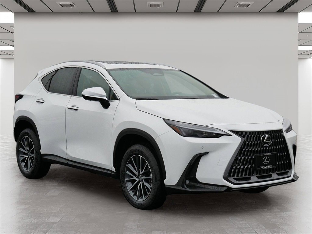This NX is well equipped with Accessory Package (K3) (Illuminated Cargo Sills w/Lexus Logo and Illuminated Door Sills w/Lexus Logo), Accessory Package (Z2) (All-Weather Cargo Mat, Alloy Wheel Locks w/Triple Nickel Chrome Plating, Cargo Net, Key Gloves w/Embossed Lexus Logo, and Rear Bumper Protector), Premium Package, 10 Speakers, 4-Wheel Disc Brakes, ABS brakes, Air Conditioning, Alloy wheels, AM/FM radio: SiriusXM, Auto High-beam Headlights, Auto tilt-away steering wheel, Auto-dimming door mirrors, Auto-dimming Rear-View mirror, Automatic temperature control, Black Emblem Overlays, Brake assist, Bumpers: body-color, Delay-off headlights, Driver door bin, Driver vanity mirror, Dual front impact airbags, Dual front side impact airbags, Electronic Stability Control, Emergency communication system: Safety Connect (up to 10-year trial subscription included), Exterior Parking Camera Rear, Four wheel independent suspension, Front anti-roll bar, Front Bucket Seats, Front Center Armrest, Front dual zone A/C, Front fog lights, Front reading lights, Fully automatic headlights, Garage door transmitter: HomeLink, Heated & Ventilated Front Seats, Heated door mirrors, Heated front seats, Illuminated entry, Knee airbag, Leather Shift Knob, Leather steering wheel, Lexus Interface w/9.8 Touchscreen Display, Low tire pressure warning, Memory seat, Navigation system: Drive Connect Cloud Navigation (subscription required), NuLuxe Seat Trim, Occupant sensing airbag, Outside temperature display, Overhead airbag, Overhead console, Panic alarm, Passenger door bin, Passenger vanity mirror, Power door mirrors, Power driver seat, Power Liftgate, Power moonroof, Power passenger seat, Power steering, Power windows, Premium Paint (PJ), Radio data system, Radio: 10-Speaker Lexus Premium Sound System, Rain sensing wipers, Rear anti-roll bar, Rear reading lights, Rear seat center armrest, Rear window defroster, Rear window wiper, Remote keyless entry, Security system, Single Color Illumination, Speed control, Speed-sensing steering, Speed-Sensitive Wipers, Split folding rear seat, Spoiler, Steering wheel memory, Steering wheel mounted audio controls, Tachometer, Telescoping steering wheel, Tilt steering wheel, Traction control, Trip computer, Turn signal indicator mirrors, Variably intermittent wipers, Ventilated front seats, Wheels: 18 15-Spoke Alloy, Wireless Apple CarPlay/Wireless Android Auto, and Wireless Phone Charger.