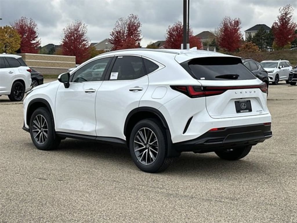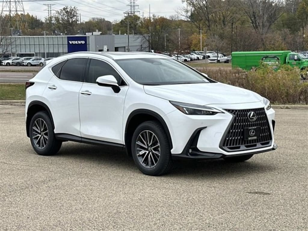 This NX is well equipped with Accessory Package (2T) (All-Weather Cargo Mat and All-Weather Floor Liners), Cold Area Package (Heated Steering Wheel), 10 Speakers, 4-Wheel Disc Brakes, ABS brakes, Air Conditioning, Alloy wheels, AM/FM radio: SiriusXM, Auto High-beam Headlights, Auto-dimming door mirrors, Auto-dimming Rear-View mirror, Automatic temperature control, Brake assist, Bumpers: body-color, Delay-off headlights, Door Edge Film by 3M, Driver door bin, Driver vanity mirror, Dual front impact airbags, Dual front side impact airbags, Electronic Stability Control, Emergency communication system: Safety Connect (up to 10-year trial subscription included), Exterior Parking Camera Rear, Four wheel independent suspension, Front anti-roll bar, Front Bucket Seats, Front Center Armrest, Front dual zone A/C, Front fog lights, Front reading lights, Fully automatic headlights, Garage door transmitter: HomeLink, Heated door mirrors, Heated Front Seats, Heated front seats, Illuminated entry, Key Gloves w/Embossed Lexus Logo, Knee airbag, Leather Shift Knob, Leather steering wheel, Lexus Interface w/9.8 Touchscreen Display, Low tire pressure warning, Mudguards, Navigation system: Drive Connect Cloud Navigation (subscription required), NuLuxe Seat Trim, Occupant sensing airbag, Outside temperature display, Overhead airbag, Overhead console, Panic alarm, Passenger door bin, Passenger vanity mirror, Power door mirrors, Power driver seat, Power Liftgate, Power Moonroof, Power passenger seat, Power steering, Power windows, Premium Paint (PJ), Radio data system, Radio: 10-Speaker Lexus Premium Sound System, Rain sensing wipers, Rear anti-roll bar, Rear reading lights, Rear seat center armrest, Rear window defroster, Rear window wiper, Remote keyless entry, Security system, Speed control, Speed-sensing steering, Speed-Sensitive Wipers, Split folding rear seat, Spoiler, Steering wheel mounted audio controls, Tachometer, Telescoping steering wheel, Tilt steering wheel, Traction control, Trip computer, Turn signal indicator mirrors, Variably intermittent wipers, Wheels: 18 15-Spoke Alloy, Wireless Apple CarPlay/Wireless Android Auto, and Wireless Phone Charger.