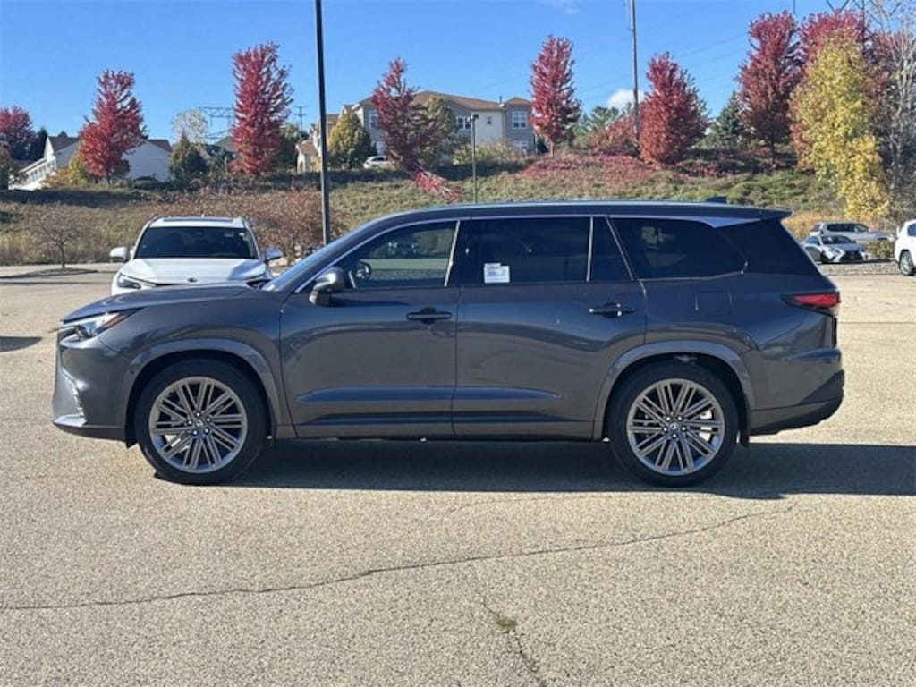 This TX is well equipped with Accessory Package (2T) (All-Weather Cargo Mat and All-Weather Floor Liners), Convenience Package (Digital Key, Front Cross-Traffic Alert & Lane Change Assist, and Traffic Jam Assist), Technology Package (Advanced Park w/Remote Park, Digital Rearview Mirror, Head-Up Display, and Panoramic View Monitor), 12 Speakers, 20 Wheels, 3rd row seats: split-bench, 4-Wheel Disc Brakes, ABS brakes, Air Conditioning, Alloy Wheel Locks w/Triple Nickel Chrome Plating, Alloy wheels, AM/FM radio, Apple CarPlay/Android Auto, Auto High-beam Headlights, Auto tilt-away steering wheel, Auto-dimming door mirrors, Auto-dimming Rear-View mirror, Automatic temperature control, Ball Mount, Brake assist, Bumpers: body-color, Cargo Net, Delay-off headlights, Door Edge Film by 3M, Driver door bin, Driver vanity mirror, Dual front impact airbags, Dual front side impact airbags, Electronic Stability Control, Emergency communication system: Safety Connect (5-year minimum), Exterior Parking Camera Rear, Four wheel independent suspension, Front & Rear Mudguards, Front anti-roll bar, Front Bucket Seats, Front Center Armrest, Front dual zone A/C, Front fog lights, Front reading lights, Fully automatic headlights, Garage door transmitter: HomeLink, Headlight cleaning, Heated & Ventilated 2nd Row Captain's Chairs, Heated & Ventilated Front Seats, Heated door mirrors, Heated front seats, Heated rear seats, Heated steering wheel, Illuminated entry, Key Gloves w/Embossed Lexus Logo, Knee airbag, Leather Shift Knob, Leather steering wheel, Lexus Interface w/14 Touchscreen Display, Low tire pressure warning, Mark Levinson 21-Speaker PurePlay Surround Sound, Memory seat, Navigation system: Drive Connect Cloud Navigation (3-year trial subscription included), Occupant sensing airbag, Outside temperature display, Overhead airbag, Panic alarm, Passenger door bin, Passenger vanity mirror, Power door mirrors, Power driver seat, Power Liftgate, Power moonroof, Power passenger seat, Power steering, Power windows, Premium Paint, Radio data system, Radio: 12-Speaker Lexus Premium Sound System, Rain sensing wipers, Rear air conditioning, Rear anti-roll bar, Rear reading lights, Rear seat center armrest, Rear window defroster, Rear window wiper, Reclining 3rd row seat, Remote keyless entry, Security system, Semi-Aniline Leather Seat Trim, Speed control, Speed-sensing steering, Split folding rear seat, Spoiler, Steering wheel memory, Steering wheel mounted audio controls, Tachometer, Telescoping steering wheel, Tilt steering wheel, Tow Hitch Receiver, Traction control, Trip computer, Turn signal indicator mirrors, Variably intermittent wipers, Ventilated front seats, Wheels: 20 Multispoke Alloy, and Wheels: 22 Multispoke Alloy.