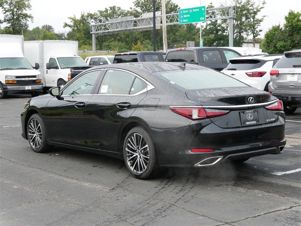 This ES is well equipped with Premium Package (Heated & Ventilated Seats, Heated Leather 3-Spoke Steering Wheel, Intuitive Parking Assist w/Auto Braking, Lexus Memory System, Parking Support Alert/Brake, Perforated NuLuxe Seat Trim (LD), Power Tilt/Telescoping Steering Wheel, Rain Sensing Wipers, Windshield De-Icer, and Wireless Charger), Ld43 Palomino Artificial Leather, 10 Speakers, 4-Wheel Disc Brakes, ABS brakes, Air Conditioning, All-Weather Floor Liners, All-Weather Floor Liners w/Trunk Tray, All-Weather Trunk Tray, Alloy wheels, AM/FM radio: SiriusXM, Auto High-beam Headlights, Auto-dimming door mirrors, Auto-dimming Rear-View mirror, Automatic temperature control, Brake assist, Bumpers: body-color, Cargo Net, Compass, Delay-off headlights, Door Edge Film by 3M, Driver door bin, Driver vanity mirror, Dual front impact airbags, Dual front side impact airbags, Electronic Stability Control, Emergency communication system, Exterior Parking Camera Rear, Four wheel independent suspension, Front anti-roll bar, Front Bucket Seats, Front Center Armrest, Front dual zone A/C, Front Power Seats, Front reading lights, Fully automatic headlights, Garage door transmitter: HomeLink, Hands-Free Power Open/Close Trunk, Heated door mirrors, Illuminated entry, Key Gloves, Knee airbag, Leather Shift Knob, Leather steering wheel, Low tire pressure warning, Navigation, Navigation system: Drive Connect Cloud Navigation (subscription required), Occupant sensing airbag, Outside temperature display, Overhead airbag, Overhead console, Panic alarm, Passenger door bin, Passenger vanity mirror, Perforated NuLuxe Seat Trim, Power door mirrors, Power driver seat, Power moonroof, Power passenger seat, Power steering, Power windows, Radio data system, Radio: Lexus Interface w/8 Touch Screen, Rear anti-roll bar, Rear reading lights, Rear seat center armrest, Rear side impact airbag, Rear window defroster, Remote keyless entry, Security system, Speed control, Speed-sensing steering, Steering wheel mounted audio controls, Tachometer, Telescoping steering wheel, Tilt steering wheel, Traction control, Trip computer, Turn signal indicator mirrors, Variably intermittent wipers, Wheel Locks, Wheels: 17 Twin-V-Spoke Alloy, Wheels: 18 Split-10-Spoke Two-Tone Alloy, and Wireless Apple CarPlay/Wireless Android Auto.