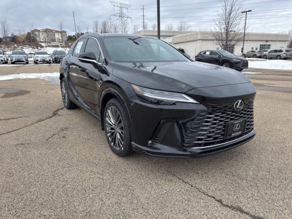 This RX is well equipped with Accessory Package, Convenience Package (Front Cross-Traffic Alert and Lane Change Assist), Luxury Grade, Technology Package (Digital Key and Digital Rearview Mirror), 2.5L I4 DOHC 16V, AWD, Black Semi Anil Leather, 12 Speakers, 120V/1,500-Watt AC Power Outlet, 21-Speaker Mark Levinson Premium Audio System, 4-Wheel Disc Brakes, ABS brakes, Advanced Park w/Remote Park, Air Conditioning, All-Weather Cargo Mat, All-Weather Floor Liners, Alloy Wheel Locks with Triple Nickel Chrome Plating, Alloy wheels, AM/FM radio: SiriusXM, Anti-whiplash front head restraints, Auto High-beam Headlights, Auto tilt-away steering wheel, Auto-dimming door mirrors, Auto-dimming Rear-View mirror, Automatic temperature control, Black Emblem Overlays, Brake assist, Bumpers: body-color, Cargo Net, Compass, Delay-off headlights, Door Edge Film by 3M, Driver door bin, Driver vanity mirror, Dual front impact airbags, Dual front side impact airbags, Electronic Stability Control, Emergency communication system: Safety Connect (5-year minimum), Exterior Parking Camera Rear, Four wheel independent suspension, Front anti-roll bar, Front Bucket Seats, Front Center Armrest, Front dual zone A/C, Front fog lights, Front reading lights, Fully automatic headlights, Garage door transmitter: HomeLink, Headlight cleaning, Heads-Up Display, Heated and Ventilated Front Bucket Seats, Heated door mirrors, Heated front seats, Heated rear seats, Heated steering wheel, Illuminated entry, Key Gloves, Leather Shift Knob, Leather steering wheel, Lexus Interface with 14 Touchscreen Display, Lexus Multimedia Screen Protector, Low tire pressure warning, Memory seat, Mud Guards, Navigation System, Occupant sensing airbag, Outside temperature display, Overhead airbag, Overhead console, Panic alarm, Passenger door bin, Passenger vanity mirror, Power door mirrors, Power driver seat, Power Liftgate, Power moonroof, Power passenger seat, Power Rear Door with Kick Sensor, Power steering, Power windows, Radio data system, Radio: 12-Speaker Lexus Premium Sound System, Rain sensing wipers, Rear air conditioning, Rear anti-roll bar, Rear reading lights, Rear seat center armrest, Rear side impact airbag, Rear window defroster, Rear window wiper, Remote keyless entry, Security system, Semi-Aniline/L-Fineskin Seat Trim, Side Puddle Lamps, Speed control, Speed-sensing steering, Split folding rear seat, Spoiler, Steering wheel memory, Steering wheel mounted audio controls, Telescoping steering wheel, Tilt steering wheel, Traction control, Trip computer, Turn signal indicator mirrors, Variably intermittent wipers, Ventilated front seats, Ventilated rear seats, Wheels: 21 20-Spoke Alloy, and Wireless Apple CarPlay/Wireless Android Auto.