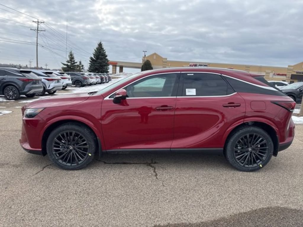 This RX is well equipped with Accessory Package, Convenience Package (Front Cross-Traffic Alert, Panoramic View Monitor, and Traffic Jam Assist), Premium Grade, AWD, Palomino Nuluxe Artificial Leather, 12 Speakers, 19 5-Spoke Alloy Wheels, 4-Wheel Disc Brakes, 8-Way Power Adjustable Driver and Passenger Seats, ABS brakes, Air Conditioning, All-Weather Floor Liners, Alloy wheels, AM/FM radio: SiriusXM, Anti-whiplash front head restraints, Auto High-beam Headlights, Auto tilt-away steering wheel, Auto-dimming door mirrors, Auto-dimming Rear-View mirror, Automatic temperature control, Black Emblem Overlays, Brake assist, Bumpers: body-color, Compass, Delay-off headlights, Driver door bin, Driver vanity mirror, Dual front impact airbags, Dual front side impact airbags, Electronic Stability Control, Emergency communication system: Safety Connect (5-year minimum), Exterior Parking Camera Rear, Four wheel independent suspension, Front anti-roll bar, Front Bucket Seats, Front Center Armrest, Front dual zone A/C, Front fog lights, Front reading lights, Fully automatic headlights, Garage door transmitter: HomeLink, Genuine wood console insert, Heated and Ventilated Front Bucket Seats, Heated door mirrors, Heated front seats, Heated steering wheel, Illuminated entry, Key Gloves, Leather Shift Knob, Leather steering wheel, Lexus Interface with 14 Touchscreen Display, Lexus Interface with 9.8 Touchscreen Display, Low tire pressure warning, Memory seat, Mud Guards, Navigation System, NuLuxe Seat Trim, Occupant sensing airbag, Outside temperature display, Overhead airbag, Overhead console, Panic alarm, Passenger door bin, Passenger vanity mirror, Power door mirrors, Power driver seat, Power Liftgate, Power passenger seat, Power Rear Door with Kick Sensor, Power steering, Power windows, Radio data system, Radio: 12-Speaker Lexus Premium Sound System, Rain sensing wipers, Rear air conditioning, Rear anti-roll bar, Rear reading lights, Rear seat center armrest, Rear side impact airbag, Rear window defroster, Rear window wiper, Remote keyless entry, Security system, Speed control, Speed-sensing steering, Split folding rear seat, Spoiler, Steering wheel memory, Steering wheel mounted audio controls, Tachometer, Telescoping steering wheel, Tilt steering wheel, Traction control, Trip computer, Turn signal indicator mirrors, Variably intermittent wipers, Ventilated front seats, Wheels: 21 20-Spoke Alloy with Dark Gray Metallic Finish, and Wireless Apple CarPlay/Wireless Android Auto.