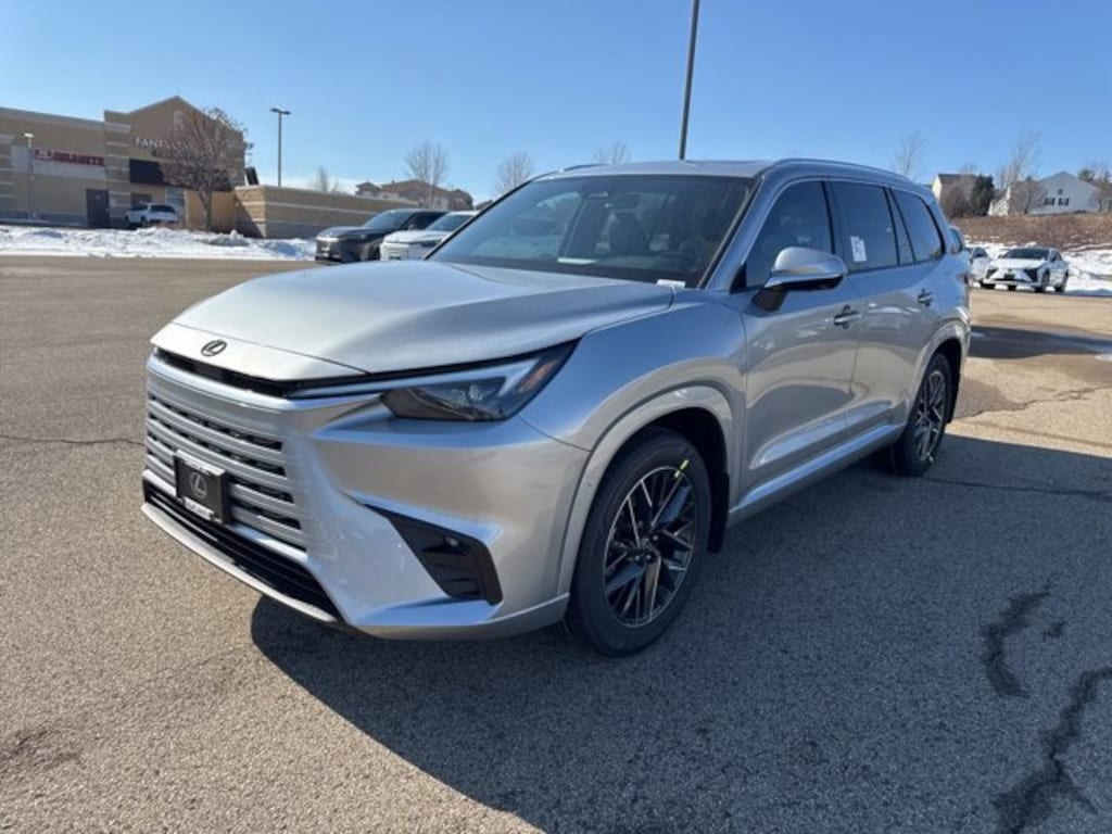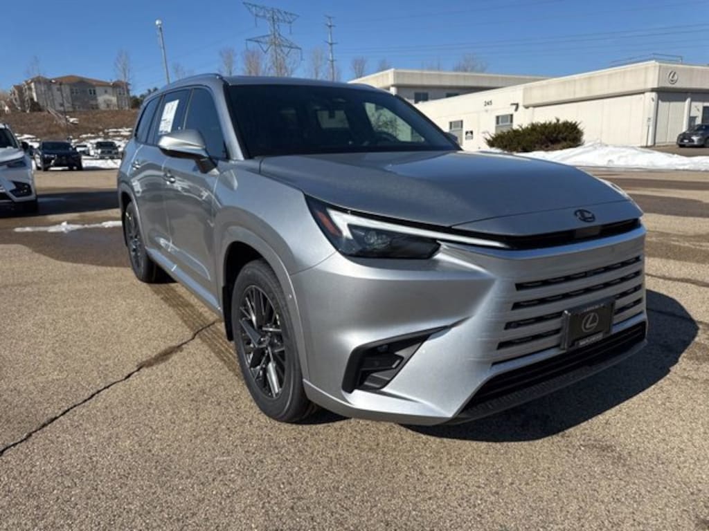 This TX is well equipped with Accessory Package, Convenience Package (Digital Key and Front Cross-Traffic Alert and Lane Change Assist), Technology Package (Advanced Park w/Remote Park and Panoramic View Monitor), 12 Speakers, 20 Wheels, 3rd row seats: split-bench, 4-Wheel Disc Brakes, ABS brakes, Air Conditioning, Alloy wheels, AM/FM radio, Apple CarPlay/Android Auto, Auto High-beam Headlights, Auto tilt-away steering wheel, Auto-dimming door mirrors, Auto-dimming Rear-View mirror, Automatic temperature control, Ball Mount, Black Emblem Overlays, Brake assist, Bumpers: body-color, Delay-off headlights, Door Edge Film by 3M, Driver door bin, Driver vanity mirror, Dual front impact airbags, Dual front side impact airbags, Electronic Stability Control, Emergency communication system: Safety Connect (5-year minimum), Exterior Parking Camera Rear, Four wheel independent suspension, Front and Rear Mudguards, Front anti-roll bar, Front Bucket Seats, Front Center Armrest, Front dual zone A/C, Front fog lights, Front reading lights, Fully automatic headlights, Garage door transmitter: HomeLink, Heated and Ventilated Front Seats, Heated and Ventilated Second Row Captain's Chairs, Heated door mirrors, Heated front seats, Heated steering wheel, Illuminated entry, Key Gloves with Embossed Lexus Logo, Knee airbag, Leather Shift Knob, Leather steering wheel, Lexus Interface with 14 Touchscreen Display, Low tire pressure warning, Memory seat, Navigation system: Drive Connect Cloud Navigation (3-year trial subscription included), NuLuxe Seat Trim, Occupant sensing airbag, Outside temperature display, Overhead airbag, Panic alarm, Passenger door bin, Passenger vanity mirror, Power door mirrors, Power driver seat, Power Liftgate, Power moonroof, Power passenger seat, Power steering, Power windows, Radio data system, Radio: 12-Speaker Lexus Premium Sound System, Rain sensing wipers, Rear air conditioning, Rear anti-roll bar, Rear reading lights, Rear seat center armrest, Rear window defroster, Rear window wiper, Reclining 3rd row seat, Remote keyless entry, Security system, Speed control, Speed-sensing steering, Split folding rear seat, Spoiler, Steering wheel memory, Steering wheel mounted audio controls, Tachometer, Telescoping steering wheel, Tilt steering wheel, Tow Hitch Receiver, Traction control, Trip computer, Turn signal indicator mirrors, Variably intermittent wipers, Ventilated front seats, and Wheels: 20 Multispoke Alloy.