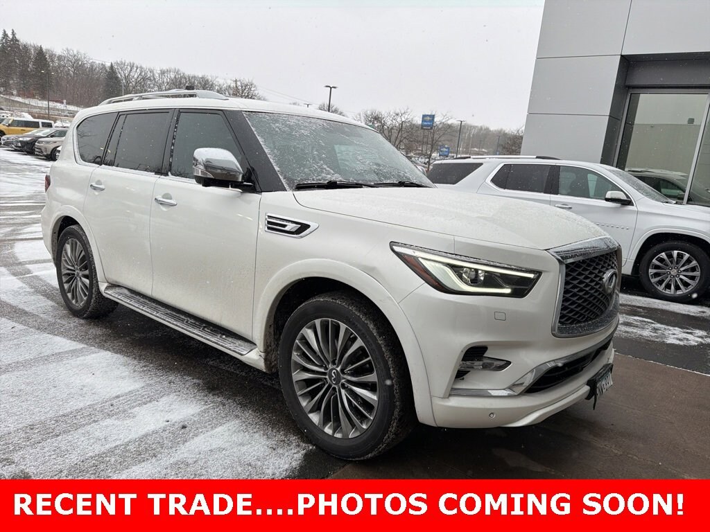 Recent Arrival! Moonstone White 2021 INFINITI QX80 4D Sport Utility Sensory 5.6L V8 4WD Odometer is 21331 miles below market average! Clean CARFAX.