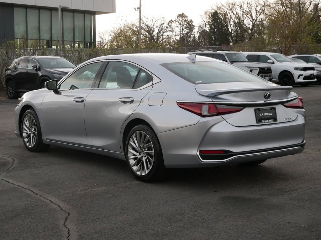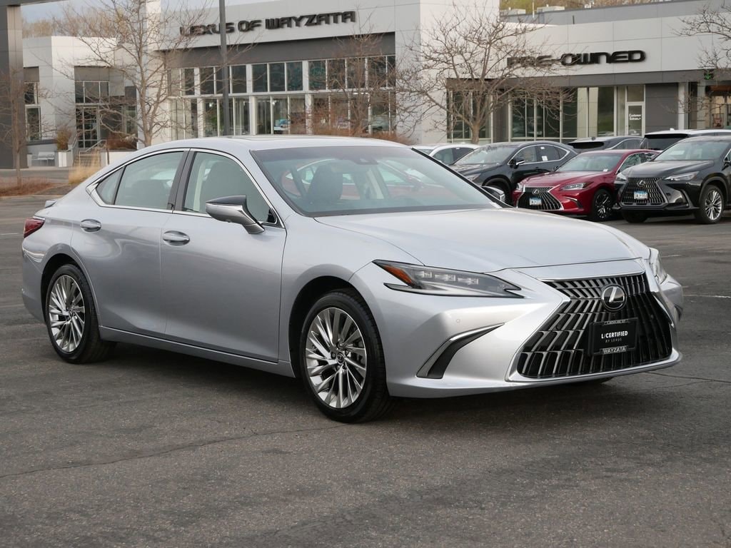 This ES is well equipped with L/Certified Certified, 2.5L I4 DOHC 16V, Black w/Black Open Pore w/Semi-Aniline Leather Seat Trim, 10 Speakers, 14-Way Power Adjustable Heated & Vent Front Seats, 4-Wheel Disc Brakes, ABS brakes, Acoustic Side Glass, Air Conditioning, Alloy wheels, AM/FM radio: SiriusXM, Auto Braking Protection, Auto High-beam Headlights, Auto tilt-away steering wheel, Auto-dimming door mirrors, Auto-dimming Rear-View mirror, Automatic temperature control, Brake assist, Bumpers: body-color, Compass, Delay-off headlights, Driver door bin, Driver vanity mirror, Dual front impact airbags, Dual front side impact airbags, Electronic Stability Control, Emergency communication system, Exterior Parking Camera Rear, Four wheel independent suspension, Front & Rear Performance Rods, Front anti-roll bar, Front Bucket Seats, Front Center Armrest, Front dual zone A/C, Front reading lights, Fully automatic headlights, Garage door transmitter: HomeLink, Genuine wood dashboard insert, Genuine wood door panel insert, Hands-Free Power Open/Close Trunk, Head-Up Display (HUD), Heads-Up Display, Heated door mirrors, Heated front seats, Heated Leather & Wood 3-Spoke Steering Wheel, Heated steering wheel, Illuminated entry, Intelligent Clearance Sonar, Intuitive Parking Assist & Panoramic View Monitor, Knee airbag, Leather Shift Knob, Leather steering wheel, Low tire pressure warning, Memory seat, Navigation System, Occupant sensing airbag, Outside temperature display, Overhead airbag, Overhead console, Panic alarm, Parking Support Alert/Brake, Passenger door bin, Passenger vanity mirror, Power door mirrors, Power driver seat, Power moonroof, Power passenger seat, Power Rear Sunshade, Power steering, Power Tilt/Telescoping Steering Wheel w/Memory, Power windows, Radio data system, Radio: Lexus Interface w/8 Multimedia Touch Scrn, Rain Sensing Wipers, Rain sensing wipers, Rear anti-roll bar, Rear Pedestrian Detection, Rear reading lights, Rear seat center armrest, Rear side impact airbag, Rear Window Blind, Rear window defroster, Remote keyless entry, Security system, Semi-Aniline Leather Seat Trim, Speed control, Speed-sensing steering, Steering wheel memory, Steering wheel mounted audio controls, Tachometer, Telescoping steering wheel, Tilt steering wheel, Traction control, Trip computer, Turn signal indicator mirrors, Variably intermittent wipers, Ventilated front seats, Wheels: 18 x 8J Split-5-Spoke Alloy, Windshield De-Icer, Wireless Apple CarPlay/Wireless Android Auto, Wireless Charger, and Wood Trim w/Ambient Lighting.