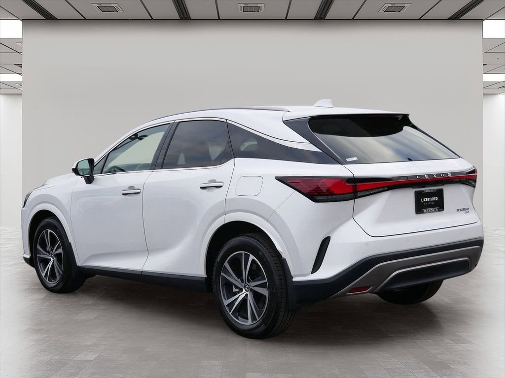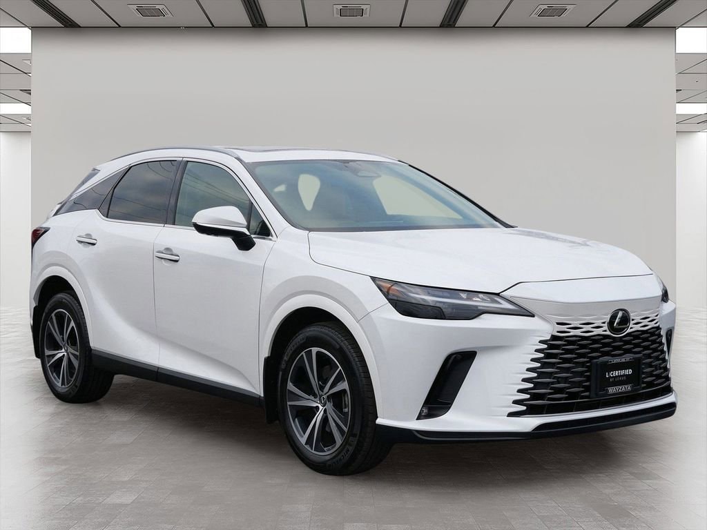 This RX is well equipped with L/Certified Certified, AWD, Palomino w/Ash Bamboo w/Leather Seat Trim, ABS brakes, Active Cruise Control, Alloy wheels, Compass, Electronic Stability Control, Front dual zone A/C, Heated & Ventilated Front Bucket Seats, Heated door mirrors, Heated front seats, Illuminated entry, Low tire pressure warning, Power Liftgate, Power moonroof, Remote keyless entry, Traction control, 12 Speakers, 19 Wheels, 3.33 Axle Ratio, 4-Wheel Disc Brakes, 8-Way Power Driver & Front Passenger Seat Adjusters, Air Conditioning, AM/FM radio: SiriusXM, Anti-whiplash front head restraints, Auto High-beam Headlights, Auto tilt-away steering wheel, Auto-dimming door mirrors, Auto-dimming Rear-View mirror, Automatic temperature control, Brake assist, Bumpers: body-color, Delay-off headlights, Driver door bin, Driver vanity mirror, Dual front impact airbags, Dual front side impact airbags, Emergency communication system: Safety Connect (10-year trial), Exterior Parking Camera Rear, Four wheel independent suspension, Front anti-roll bar, Front Bucket Seats, Front Center Armrest, Front fog lights, Front reading lights, Fully automatic headlights, Garage door transmitter: HomeLink, Genuine wood console insert, Heated steering wheel, Leather Shift Knob, Leather steering wheel, Memory seat, NuLuxe Seat Trim, Occupant sensing airbag, Outside temperature display, Overhead airbag, Overhead console, Panic alarm, Passenger door bin, Passenger vanity mirror, Power door mirrors, Power driver seat, Power passenger seat, Power steering, Power windows, Radio data system, Radio: Lexus Interface w/9.8 HD Touchscreen Display, Rain sensing wipers, Rear air conditioning, Rear anti-roll bar, Rear reading lights, Rear seat center armrest, Rear side impact airbag, Rear window defroster, Rear window wiper, Security system, Speed control, Speed-sensing steering, Split folding rear seat, Spoiler, Steering wheel memory, Steering wheel mounted audio controls, Tachometer, Telescoping steering wheel, Tilt steering wheel, Trip computer, Turn signal indicator mirrors, Variably intermittent wipers, Ventilated front seats, and Wireless Apple CarPlay/Wireless Android Auto.
