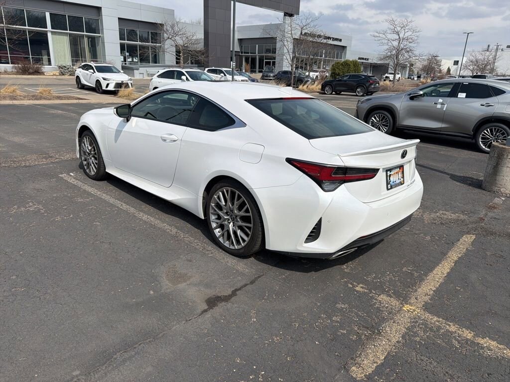 This RC is well equipped with 10 Speakers, 4-Wheel Disc Brakes, ABS brakes, Air Conditioning, Alloy wheels, AM/FM radio: SiriusXM, Auto High-beam Headlights, Auto-dimming Rear-View mirror, Automatic temperature control, Blind Spot Monitor w/Rear Cross Traffic Alert, Brake assist, Bumpers: body-color, CD player, Compass, Delay-off headlights, Driver door bin, Driver vanity mirror, Dual front impact airbags, Dual front side impact airbags, Electronic Stability Control, Emergency communication system: Lexus Enform w/Safety Connect, Exterior Parking Camera Rear, Four wheel independent suspension, Front anti-roll bar, Front Bucket Seats, Front Center Armrest, Front dual zone A/C, Front reading lights, Fully automatic headlights, Garage door transmitter: HomeLink, Heated & Vented Driver & Passenger Seats, Heated door mirrors, Heated front seats, Illuminated entry, Knee airbag, Leather Shift Knob, Low tire pressure warning, Occupant sensing airbag, Outside temperature display, Overhead airbag, Overhead console, Panic alarm, Passenger door bin, Passenger vanity mirror, Power door mirrors, Power driver seat, Power passenger seat, Power steering, Power windows, Radio data system, Rear anti-roll bar, Rear reading lights, Rear side impact airbag, Rear window defroster, Remote keyless entry, Security system, Speed control, Speed-sensing steering, Speed-Sensitive Wipers, Split folding rear seat, Steering wheel mounted audio controls, Tachometer, Telescoping steering wheel, Tilt steering wheel, Traction control, Trip computer, Turn signal indicator mirrors, and Variably intermittent wipers.