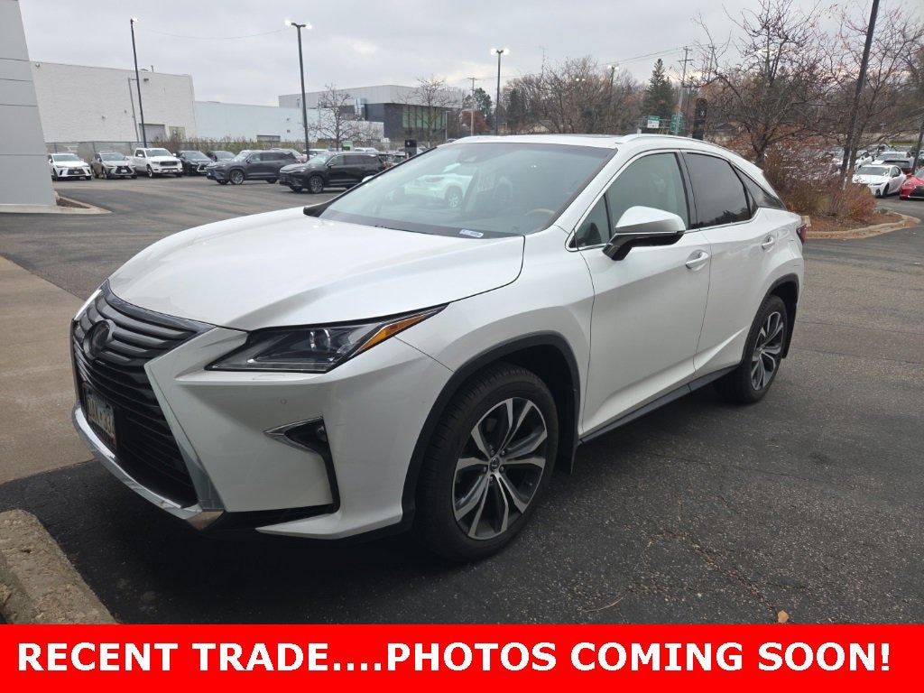This RX is well equipped with L/Certified Certified, AWD, Parchment w/Semi-Aniline Leather Seat Trim, ABS brakes, Active Cruise Control, Alloy wheels, Compass, Electronic Stability Control, Front dual zone A/C, Heated door mirrors, Illuminated entry, Low tire pressure warning, Power Liftgate, Remote keyless entry, Traction control, 2.277 Axle Ratio, 4-Wheel Disc Brakes, 9 Speakers, Air Conditioning, AM/FM radio: SiriusXM, AM/FM/CD Radio, Anti-whiplash front head restraints, Auto High-beam Headlights, Auto-dimming Rear-View mirror, Automatic temperature control, Bumpers: body-color, CD player, Delay-off headlights, Distance pacing cruise control: All-Speed Dynamic Radar Cruise Control, Driver door bin, Driver vanity mirror, Dual front impact airbags, Dual front side impact airbags, Emergency communication system: Lexus Enform w/Safety Connect, Exterior Parking Camera Rear, Four wheel independent suspension, Front anti-roll bar, Front Bucket Seats, Front Center Armrest, Front fog lights, Front reading lights, Fully automatic headlights, Garage door transmitter: HomeLink, Genuine wood console insert, Genuine wood door panel insert, Knee airbag, Leather Shift Knob, Leather steering wheel, NuLuxe Seat Trim, Occupant sensing airbag, Outside temperature display, Overhead airbag, Overhead console, Panic alarm, Passenger door bin, Passenger vanity mirror, Power door mirrors, Power driver seat, Power passenger seat, Power steering, Power windows, Radio data system, Rain sensing wipers, Rear anti-roll bar, Rear reading lights, Rear seat center armrest, Rear side impact airbag, Rear window defroster, Rear window wiper, Security system, Speed control, Speed-sensing steering, Split folding rear seat, Spoiler, Steering wheel mounted audio controls, Tachometer, Telescoping steering wheel, Tilt steering wheel, Trip computer, Turn signal indicator mirrors, Variably intermittent wipers, and Wheels: 18 x 8 7-Spoke Aluminum.
