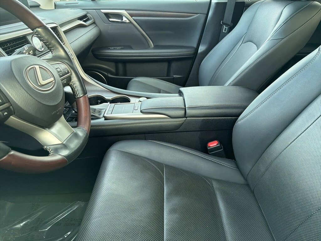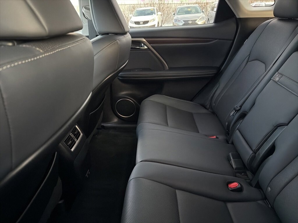 This RX is well equipped with AWD, Black w/Semi-Aniline Leather Seat Trim, 18 Aluminum Wheels, 3.329 Axle Ratio, 4-Wheel Disc Brakes, 9 Speakers, ABS brakes, Air Conditioning, Alloy wheels, AM/FM radio: SiriusXM, AM/FM/CD Radio, Anti-whiplash front head restraints, Apple CarPlay/Android Auto, Auto High-beam Headlights, Auto-dimming Rear-View mirror, Automatic temperature control, Brake assist, Bumpers: body-color, CD player, Compass, Delay-off headlights, Driver door bin, Driver vanity mirror, Dual front impact airbags, Dual front side impact airbags, Electronic Stability Control, Emergency communication system, Exterior Parking Camera Rear, Four wheel independent suspension, Front anti-roll bar, Front Bucket Seats, Front Center Armrest, Front dual zone A/C, Front reading lights, Fully automatic headlights, Garage door transmitter: HomeLink, Genuine wood console insert, Genuine wood door panel insert, Heated door mirrors, Illuminated entry, Knee airbag, Leather Shift Knob, Leather steering wheel, Low tire pressure warning, NuLuxe Seat Trim, Occupant sensing airbag, Outside temperature display, Overhead airbag, Overhead console, Panic alarm, Passenger door bin, Passenger vanity mirror, Power door mirrors, Power driver seat, Power Liftgate, Power passenger seat, Power steering, Power windows, Radio data system, Rain sensing wipers, Rear anti-roll bar, Rear reading lights, Rear seat center armrest, Rear side impact airbag, Rear window defroster, Rear window wiper, Remote keyless entry, Security system, Speed control, Speed-sensing steering, Split folding rear seat, Spoiler, Steering wheel mounted audio controls, Tachometer, Telescoping steering wheel, Tilt steering wheel, Traction control, Trip computer, Turn signal indicator mirrors, and Variably intermittent wipers.