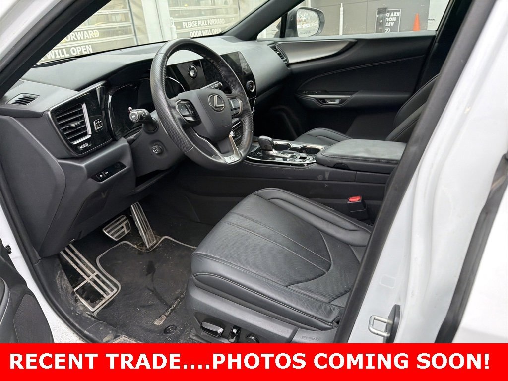 This NX is well equipped with L/Certified Certified, 10 Speakers, 20 Wheels, 4-Wheel Disc Brakes, ABS brakes, Adaptive suspension, Air Conditioning, Alloy wheels, AM/FM radio: SiriusXM, Anti-whiplash front head restraints, Auto High-beam Headlights, Auto tilt-away steering wheel, Auto-dimming door mirrors, Auto-dimming Rear-View mirror, Automatic temperature control, Brake assist, Bumpers: body-color, Delay-off headlights, Driver door bin, Driver vanity mirror, Dual front impact airbags, Dual front side impact airbags, Electronic Stability Control, Emergency communication system: Safety Connect (up to 10-year trial subscription included), Exterior Parking Camera Rear, F SPORT NuLuxe Seat Trim, Four wheel independent suspension, Front anti-roll bar, Front Bucket Seats, Front Center Armrest, Front dual zone A/C, Front fog lights, Front reading lights, Fully automatic headlights, Garage door transmitter: HomeLink, Heads-Up Display, Heated door mirrors, Heated Front Bucket Seats, Heated front seats, Illuminated entry, Knee airbag, Leather Shift Knob, Leather steering wheel, Low tire pressure warning, Navigation system: Drive Connect Cloud Navigation (subscription required), Occupant sensing airbag, Outside temperature display, Overhead airbag, Overhead console, Panic alarm, Passenger door bin, Passenger vanity mirror, Power door mirrors, Power driver seat, Power passenger seat, Power steering, Power windows, Radio data system, Rain sensing wipers, Rear anti-roll bar, Rear reading lights, Rear seat center armrest, Rear window defroster, Rear window wiper, Remote keyless entry, Security system, Speed control, Speed-sensing steering, Speed-Sensitive Wipers, Split folding rear seat, Spoiler, Sport steering wheel, Steering wheel mounted audio controls, Tachometer, Telescoping steering wheel, Tilt steering wheel, Traction control, Trip computer, Turn signal indicator mirrors, Variably intermittent wipers, and Wireless Apple CarPlay/Wireless Android Auto.