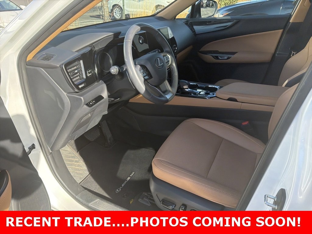 This NX is well equipped with L/Certified Certified, 2.5L I4 DOHC 16V, 10 Speakers, 18 Wheels, 4-Wheel Disc Brakes, ABS brakes, Air Conditioning, Alloy wheels, AM/FM radio: SiriusXM, Anti-whiplash front head restraints, Auto High-beam Headlights, Auto-dimming door mirrors, Auto-dimming Rear-View mirror, Automatic temperature control, Brake assist, Bumpers: body-color, Delay-off headlights, Driver door bin, Driver vanity mirror, Dual front impact airbags, Dual front side impact airbags, Electronic Stability Control, Emergency communication system, Exterior Parking Camera Rear, Four wheel independent suspension, Front anti-roll bar, Front Bucket Seats, Front Center Armrest, Front dual zone A/C, Front fog lights, Front reading lights, Fully automatic headlights, Garage door transmitter: HomeLink, Heated door mirrors, Heated Front Bucket Seats, Heated front seats, Illuminated entry, Knee airbag, Leather Shift Knob, Leather steering wheel, Low tire pressure warning, Navigation system: Drive Connect Cloud Navigation (subscription required), NuLuxe Seat Trim, Occupant sensing airbag, Outside temperature display, Overhead airbag, Overhead console, Panic alarm, Passenger door bin, Passenger vanity mirror, Power door mirrors, Power driver seat, Power passenger seat, Power steering, Power windows, Radio data system, Rear anti-roll bar, Rear reading lights, Rear seat center armrest, Rear window defroster, Rear window wiper, Remote keyless entry, Security system, Speed control, Speed-sensing steering, Split folding rear seat, Spoiler, Steering wheel mounted audio controls, Tachometer, Telescoping steering wheel, Tilt steering wheel, Traction control, Trip computer, Turn signal indicator mirrors, and Variably intermittent wipers.