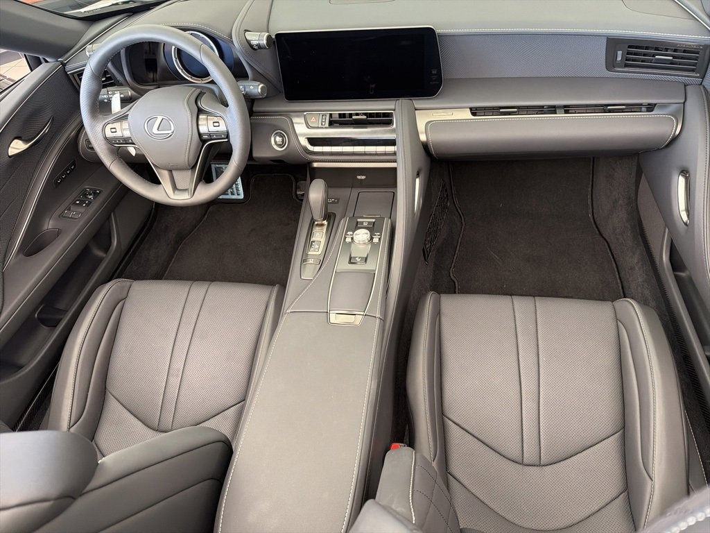 This LC is well equipped with Bespoke Build Package (2.937 TORSEN Limited-Slip Rear Differential, Key Plate, and Performance Damper Headlamp), Cold Area Package (Heated Leather-Trimmed Steering Wheel), Dark Chrome Trim (Black Headlamp, Black Mesh Front Grille, and Rear LED Lamp), L/Certified Certified, 12 Speakers, 4-Wheel Disc Brakes, ABS brakes, Adaptive suspension, Air Conditioning, Alloy wheels, AM/FM radio: SiriusXM, Apple CarPlay/Android Auto, Auto High-beam Headlights, Auto tilt-away steering wheel, Auto-dimming door mirrors, Auto-dimming Rear-View mirror, Automatic temperature control, Brake assist, Bumpers: body-color, Carbon-Fiber Door Scuff Plates, Comfort Bucket Seats, Compass, Convertible roof lining, Convertible roof wind blocker, Delay-off headlights, Driver door bin, Driver vanity mirror, Dual front impact airbags, Dual front side impact airbags, Electronic Stability Control, Emergency communication system: Safety Connect (3-year trial), Exterior Parking Camera Rear, Four wheel independent suspension, Front anti-roll bar, Front Bucket Seats, Front Center Armrest, Front dual zone A/C, Front reading lights, Garage door transmitter: HomeLink, Glass rear window, Head-Up Display, Heated & Ventilated Front Bucket Seats, Heated front seats, Illuminated entry, Integrated roll-over protection, Knee airbag, Leather Perforated Seat Surfaces, Leather Shift Knob, Leather steering wheel, Low tire pressure warning, Memory seat, Navigation System, Neck Heater, Occupant sensing airbag, Outside temperature display, Panic alarm, Passenger door bin, Passenger vanity mirror, Power adjustable front head restraints, Power convertible roof, Power door mirrors, Power driver seat, Power passenger seat, Power steering, Power windows, Premium Paint (PJ), Radio data system, Radio: Lexus 12-Speaker Premium Sound System, Radio: Mark Levinson 13-Speaker Surround Sound, Rain sensing wipers, Rear anti-roll bar, Rear window defroster, Remote keyless entry, Security system, Speed control, Speed-sensing steering, Speed-Sensitive Wipers, Steering wheel memory, Steering wheel mounted audio controls, Tachometer, Telescoping steering wheel, Tilt steering wheel, Traction control, Trip computer, Turn signal indicator mirrors, Variably intermittent wipers, Ventilated front seats, Wheels: 21 Forged Alloy w/Matte Black Finish, and Wheels: 21 Split-5 Spoke Forged Alloy.