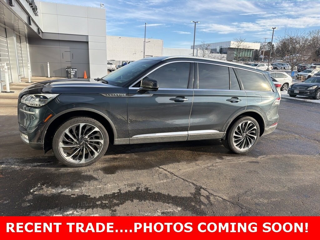 This Lincoln Aviator is well equipped with Class IV Trailer Tow Package (4-Pin & 7-Pin Connectors, Blind Spot Detection w/Cross Traffic Alert, Class IV Hitch & Wiring, Smart Trailer Tow, and Trailer Sway Control), Convenience Package (Head-Up Display, Phone As A Key, and Wireless Charging Pad), Dynamic Handling Package (Adaptive Suspension w/Road Preview and Air Glide Suspension w/Dynamic Lower Entry), Elements Package Plus (Auto Air Refresh, Auto Heated/Ventilated Driver & Passenger Seats, Heated Steering Wheel, Heated VisioBlade Wipers, and Heated/Ventilated 2nd Row Outboard Seats), Equipment Group 202A (Wheels: 22 Bright-Machined Aluminum), Illumination Package (Adaptive Pixel LED Headlamps and Lincoln Lit Star in Grille), Lincoln Co-Pilot360 Plus (Active Park Assist Plus, Adaptive Cruise Control w/Traffic Jam Assist, Evasive Steering Assist, and Reverse Brake Assist), Luxury Package (30-Way Perfect Position Seats w/Active Motion, Radio: Revel Ultima 3D Audio System w/28 Speakers, and Rear Door Sunshades), 14 Speakers, 3.58 Axle Ratio, 3rd row seats: split-bench, 4-Wheel Disc Brakes, ABS brakes, Adaptive suspension, Air Conditioning, All-Weather Floor Liners w/Fr&Rr Carpet Floor Mats, Alloy wheels, AM/FM radio: SiriusXM, Audio memory, Auto High-beam Headlights, Auto-dimming door mirrors, Auto-dimming Rear-View mirror, Automatic temperature control, Brake assist, Bumpers: body-color, Compass, Delay-off headlights, Driver door bin, Driver vanity mirror, Dual front impact airbags, Dual front side impact airbags, Electronic Stability Control, Emergency communication system, Four wheel independent suspension, Front anti-roll bar, Front Bucket Seats, Front Center Armrest, Front dual zone A/C, Front fog lights, Front reading lights, Fully automatic headlights, Garage door transmitter, Heated door mirrors, Heated front seats, HVAC memory, Illuminated entry, Knee airbag, Lincoln Play Rear Seat Entertainment System, Low tire pressure warning, Memory seat, Navigation System, Occupant sensing airbag, Outside temperature display, Overhead airbag, Overhead console, Panic alarm, Passenger door bin, Passenger vanity mirror, Power door mirrors, Power driver seat, Power Liftgate, Power moonroof: Panoramic Vista Roof, Power passenger seat, Power steering, Power windows, Premium Lthr Heated/Ventilated Fnt Captain's Chairs, Radio data system, Radio: Revel AM/FM Audio System w/14 Speakers, Rain sensing wipers, Rear air conditioning, Rear anti-roll bar, Rear audio controls, Rear dual zone A/C, Rear reading lights, Rear window defroster, Rear window wiper, Remote keyless entry, Security system, SiriusXM, Speed control, Speed-Sensitive Wipers, Split folding rear seat, Spoiler, Steering wheel memory, Steering wheel mounted A/C controls, Steering wheel mounted audio controls, SYNC 3 Communication & Entertainment System, Tachometer, Telescoping steering wheel, Tilt steering wheel, Traction control, Trip computer, Turn signal indicator mirrors, Variably intermittent wipers, and Wheels: 20 Bright-Machined Aluminum.